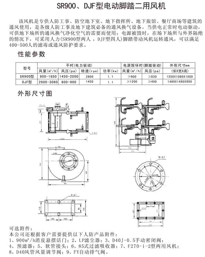 一、DJF-1、SR900 系列電動腳踏兩用風(fēng)機