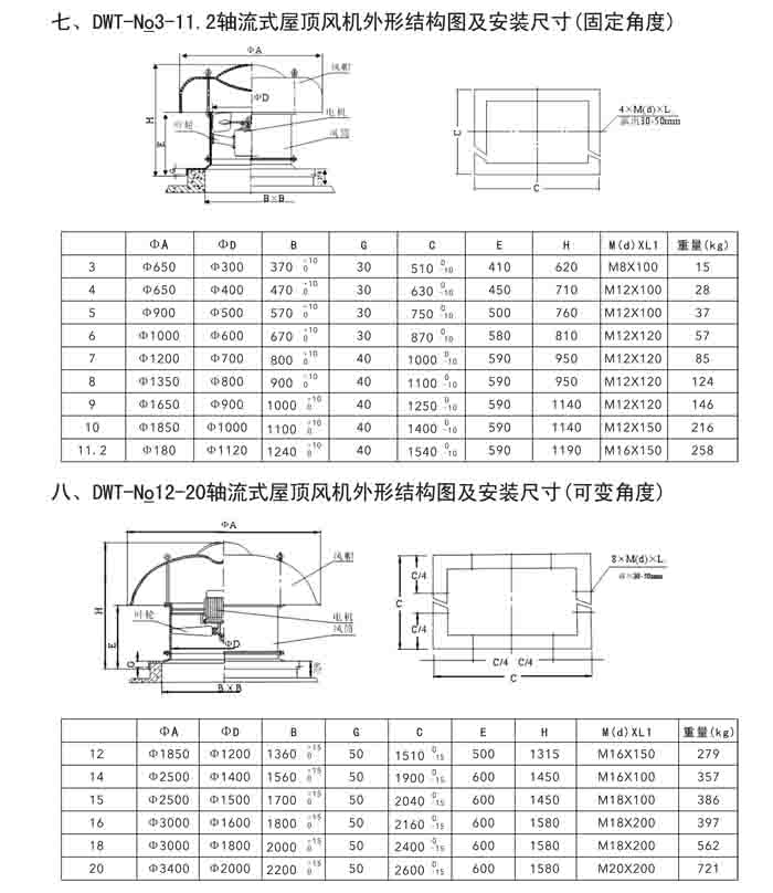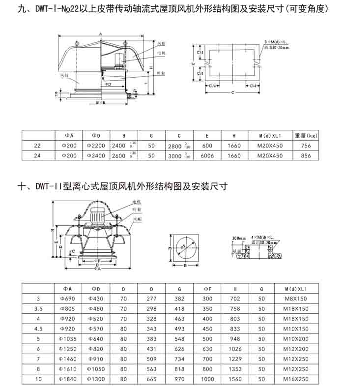 · 二、DWT-II、III 系列離心式屋頂風(fēng)機(jī)