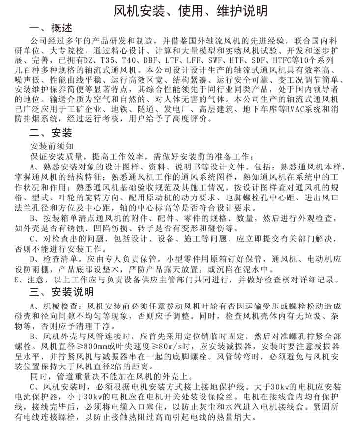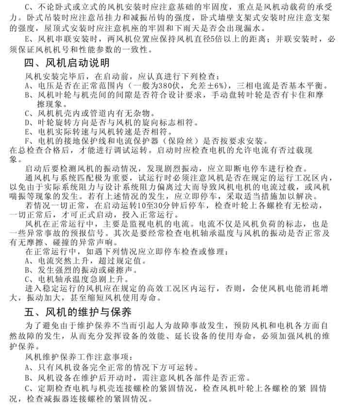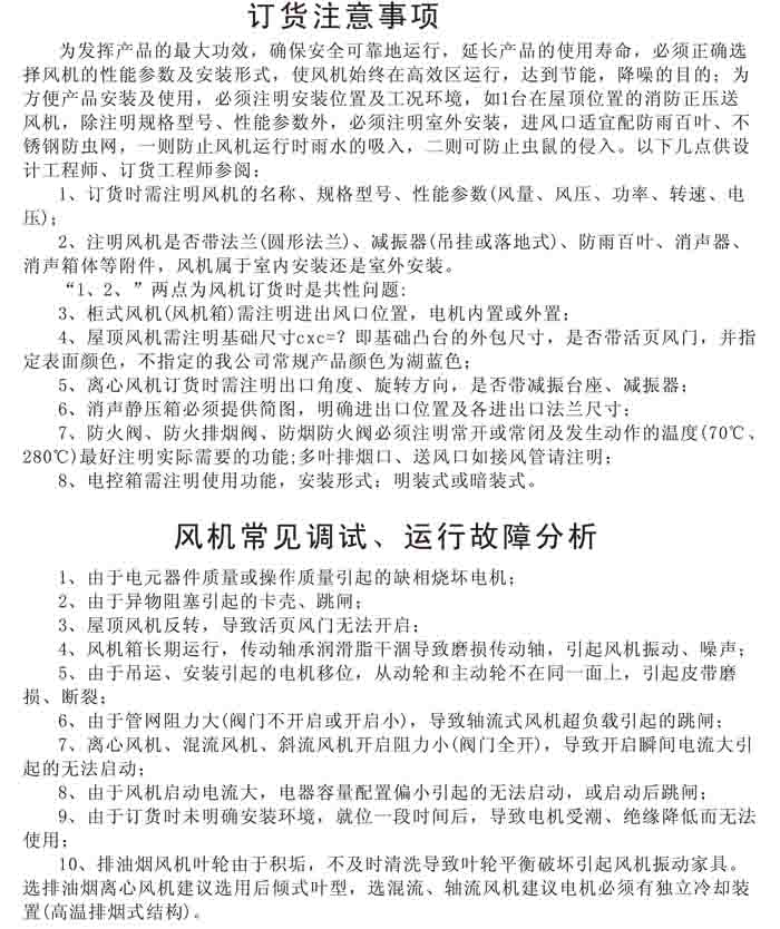 · 一、風(fēng)機(jī)選用參考、安裝維護(hù)使用說明、常見故障分析、訂貨注意事項(xiàng)